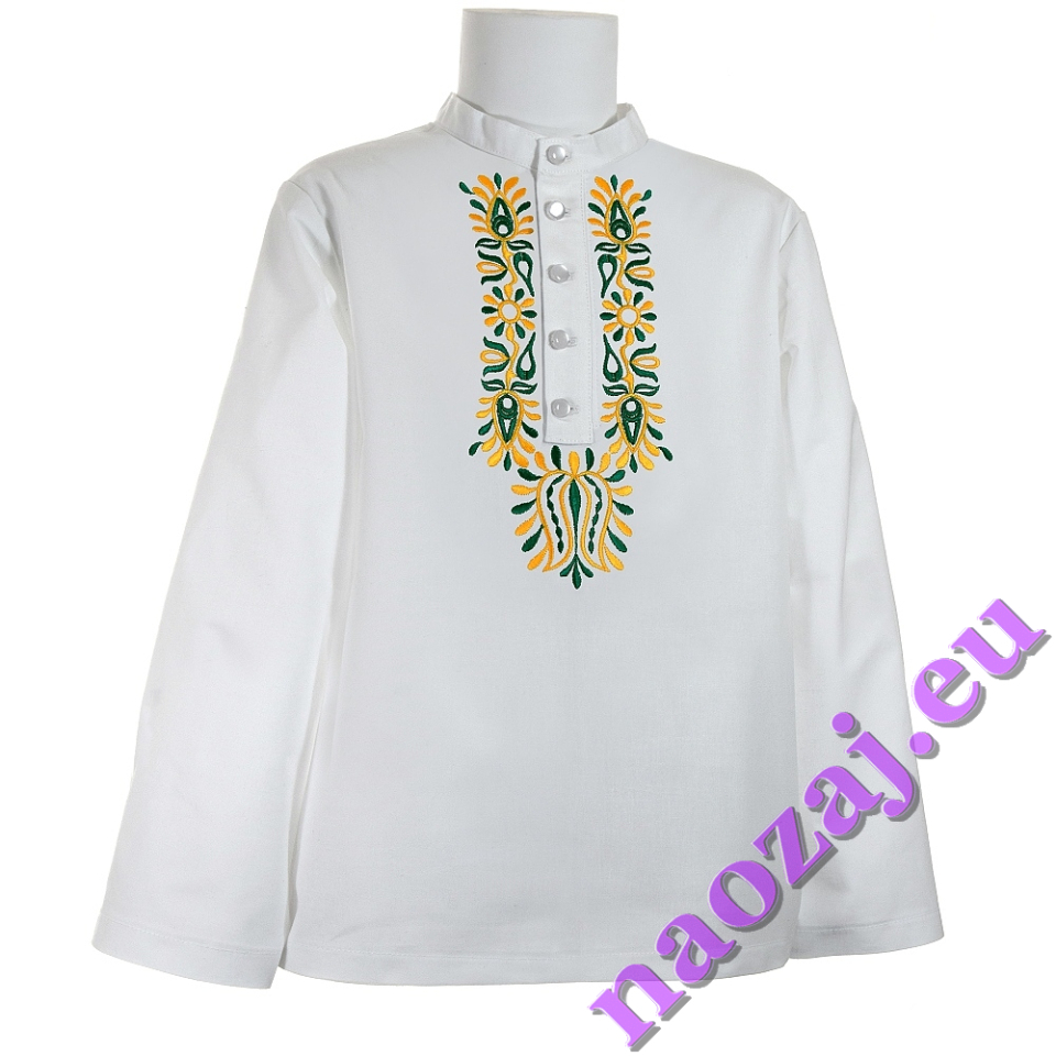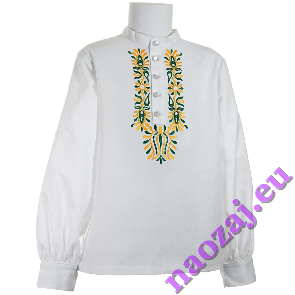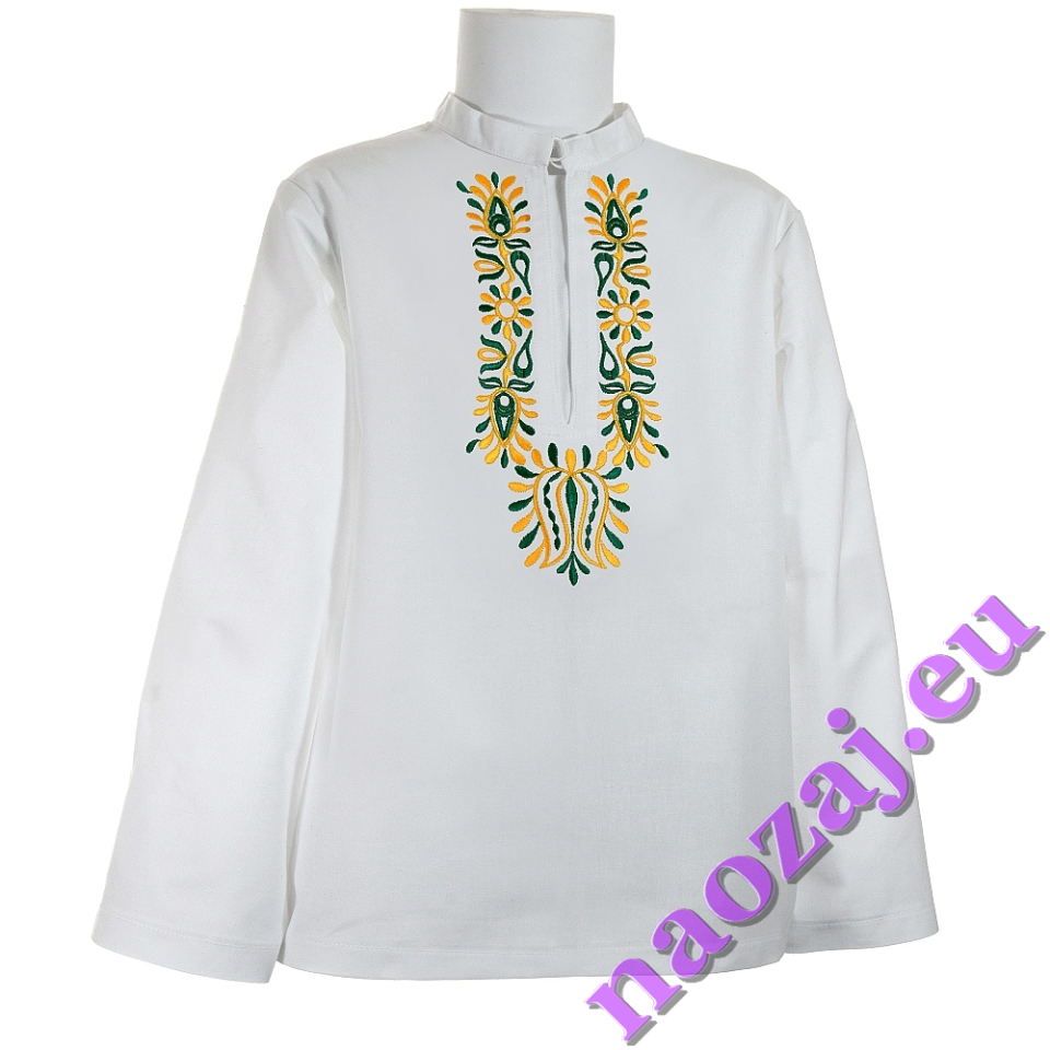 Chlapčenská košeľa s hladkovanou výšivkou na hrudi