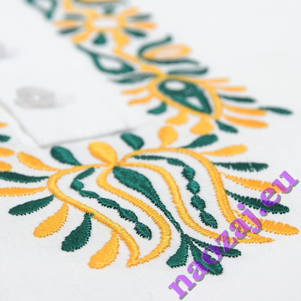 Detská chlapčenská krojová košeľa "BOHUŠKO" je zdobená na hrudi hladkovanou výšivkou.