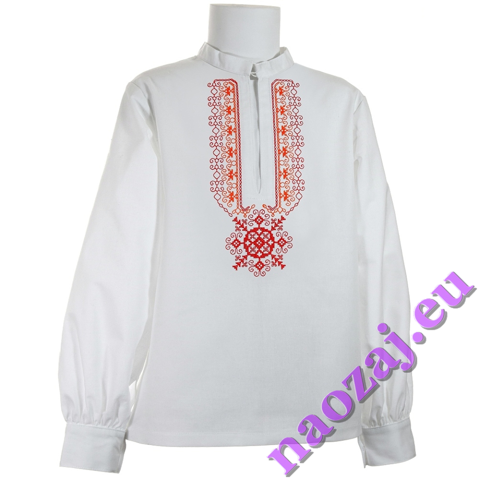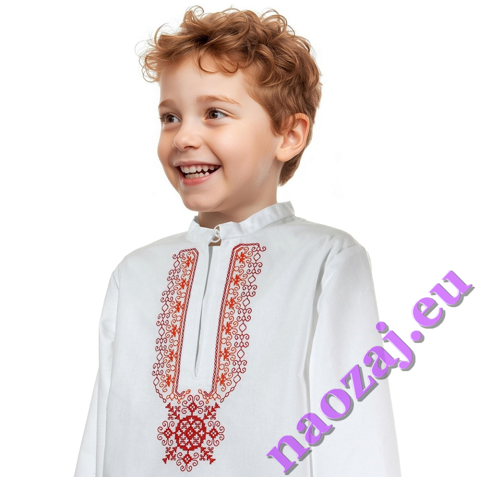 Detská chlapčenská krojová košeľa "SLAVKO" je zdobená na hrudi krížikovou výšivkou.