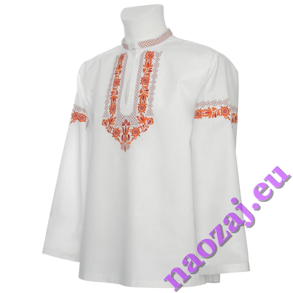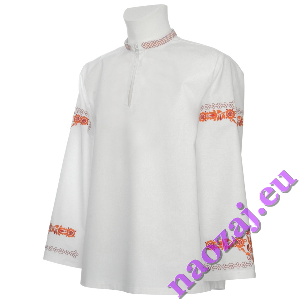 Krojová košeľa "VLADIMÍR" (s otvorenými rukávmi) je zdobená hladkovanou výšivkou na hrudi, límci, ramenách a rukávoch.